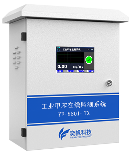 YF-8801-TX奕帆甲苯在線監測系統,由奕帆科技自主研發,適用于連續監測無組織環境空氣中的甲苯等有機化合物,產品配備高精度傳感器,采用泵吸式采樣監測,內置多重預處系統,包括除塵除水過濾等,可以很好的保護傳感器不受侵害,保證監測數據的準確穩定。奕帆甲苯在線監測系統具備24小時連續監測、超標報警、數據儲存等功能,同時數據還可對接環保平臺。