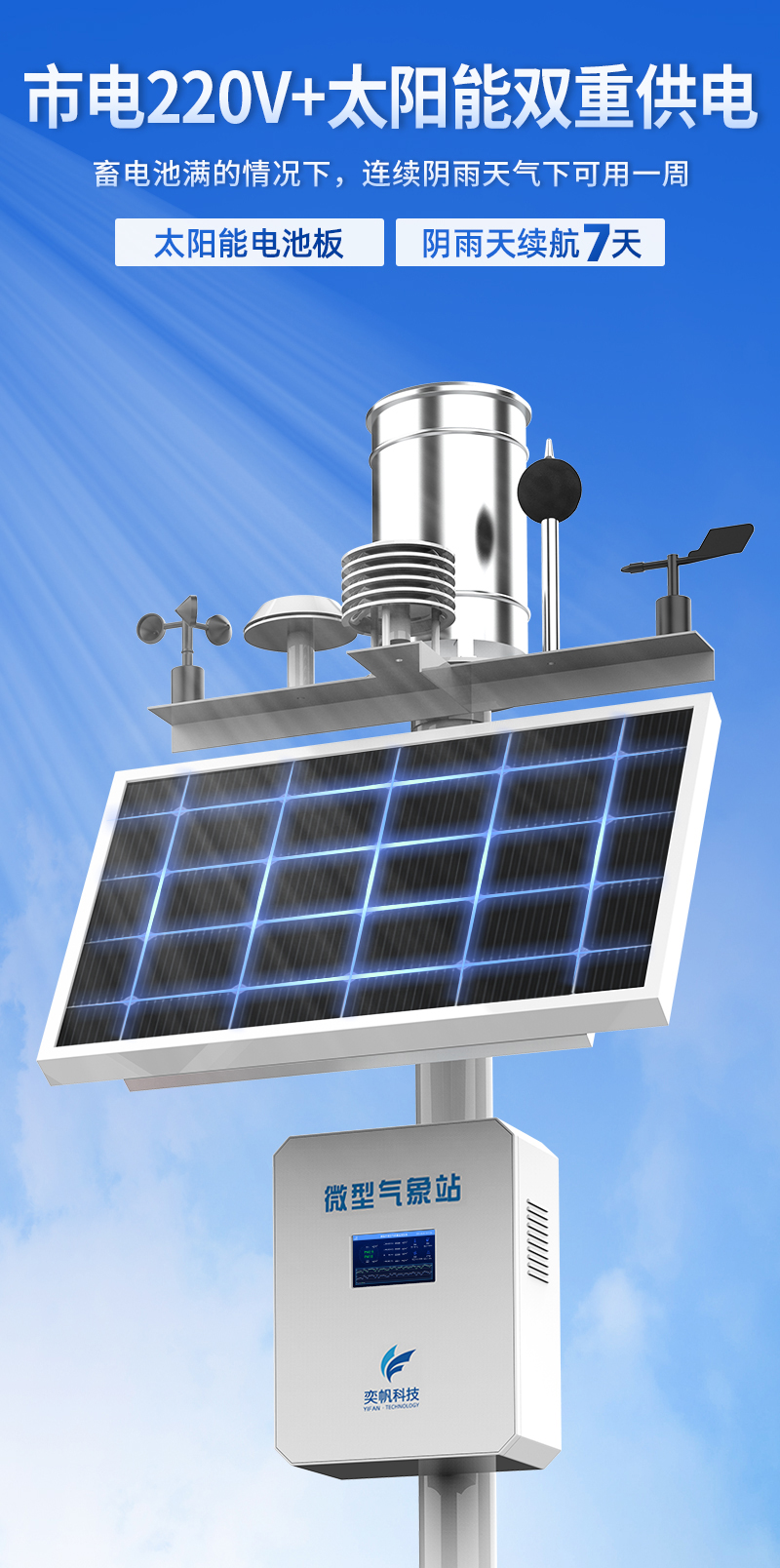 YF-8801-QX奕帆科技微型氣象站是按照國際氣象觀測標準,研究而開發生產的多要素自動觀測站。可監測空氣溫度、濕度、風向、風速、氣壓、雨量、光照強度、總輻射等常規氣象要素,可在無人值守的惡劣環境下全天候全自動正常運行,可擴展對氣象參數進行監測。同時結合物聯網、智能采集系統、地理信息系統、動態圖表系統等先進技術為環保部門的環境決策、環境管理、污染防治提供詳實的數據資料和科學依據。