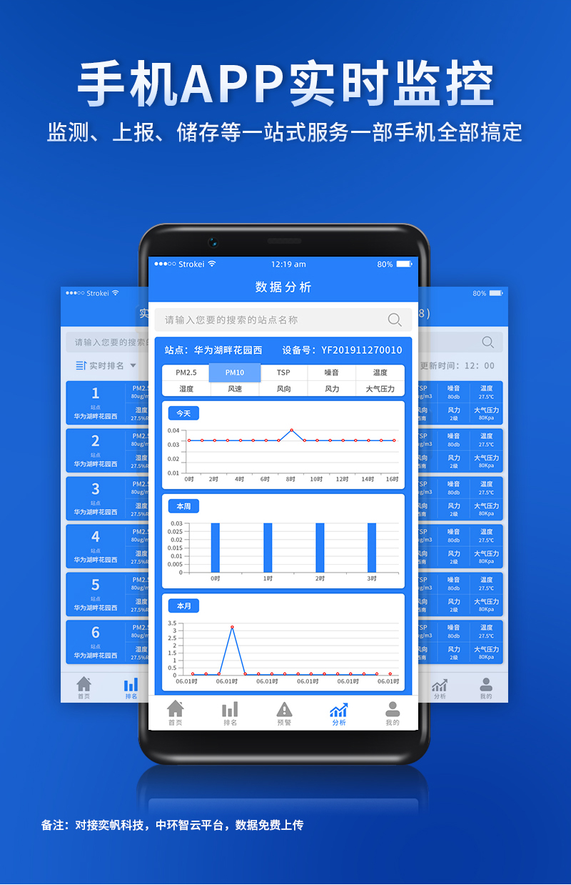 可在app和云平臺查看實時數據、歷史數據、時具備24小時連續監測、超標報警、數據存儲功能。