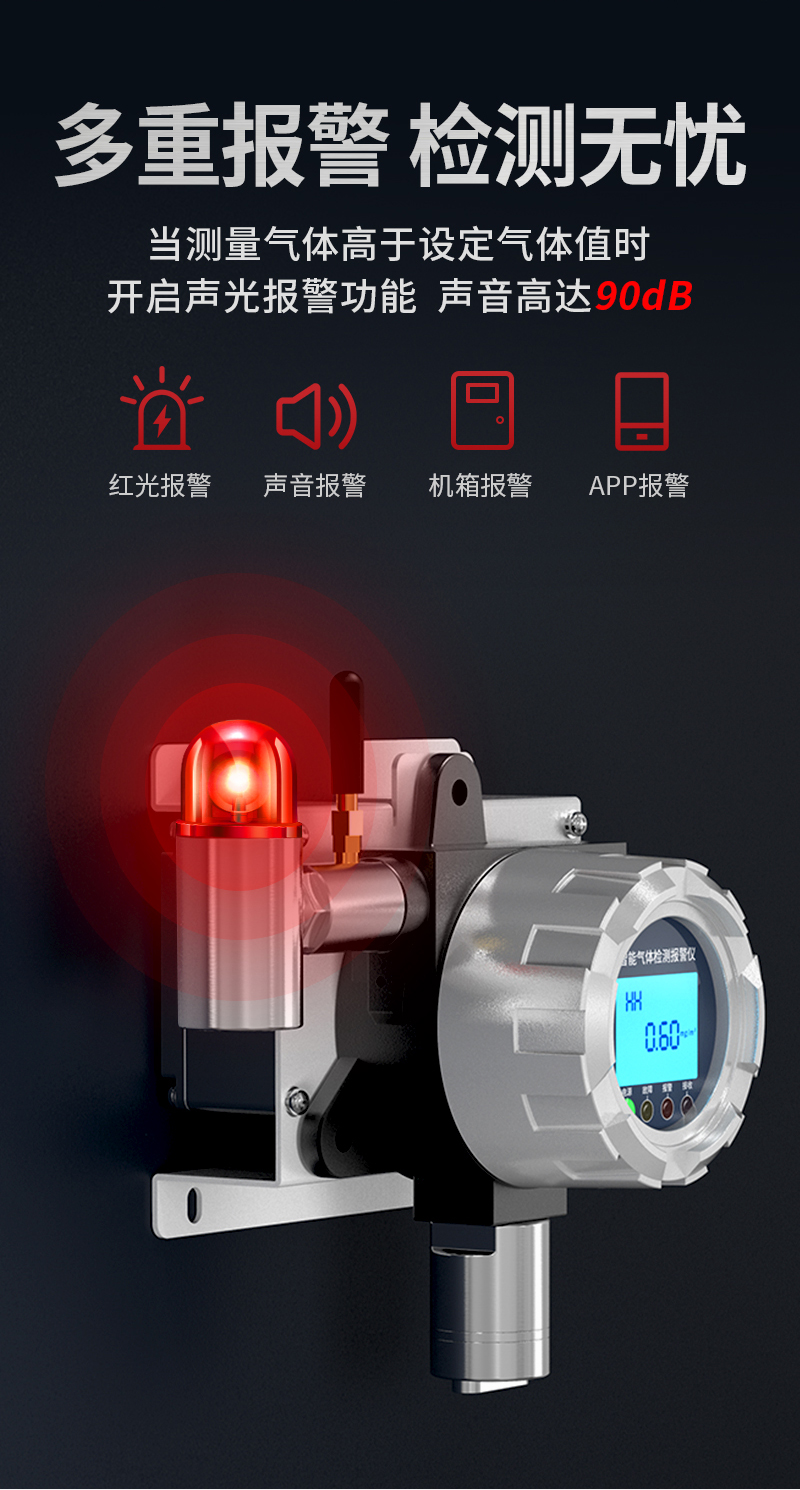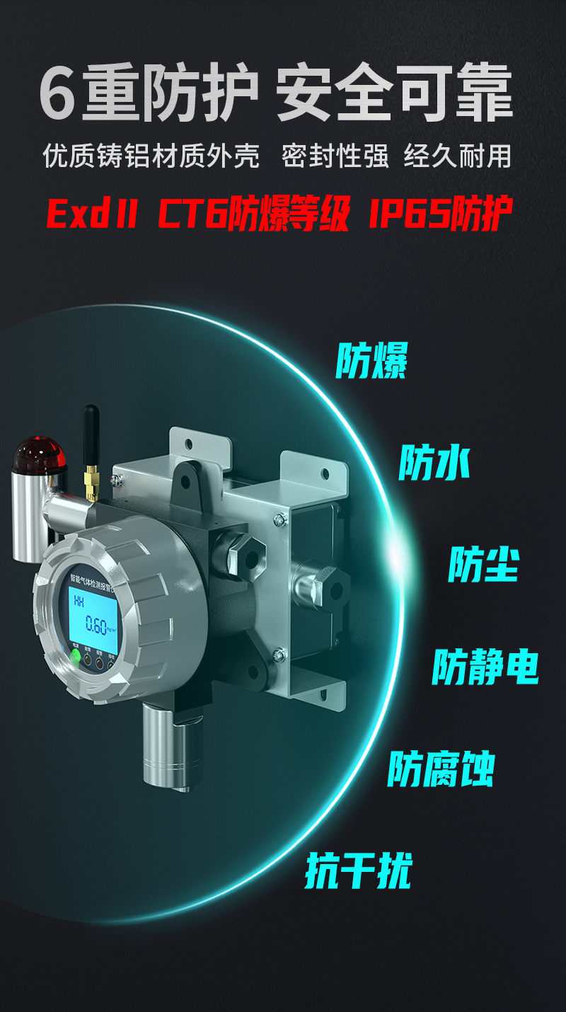 采用進口高精度傳感器和微控制器技術,響應速度快,測量精度高,穩定性和重復性好等優點。防爆接線方式活用于各種危險場所,并兼容各種控制報警器,PLC,DCS等控制系統,可以同時實現現場報警預警,4-20mA標準信號出,繼由器開關量輸出,易示各項技術指標和顯示濃度值,同時具有多種極的電路保護功能,有效防止各種人為因素,不可控因素導致的儀器損壞。